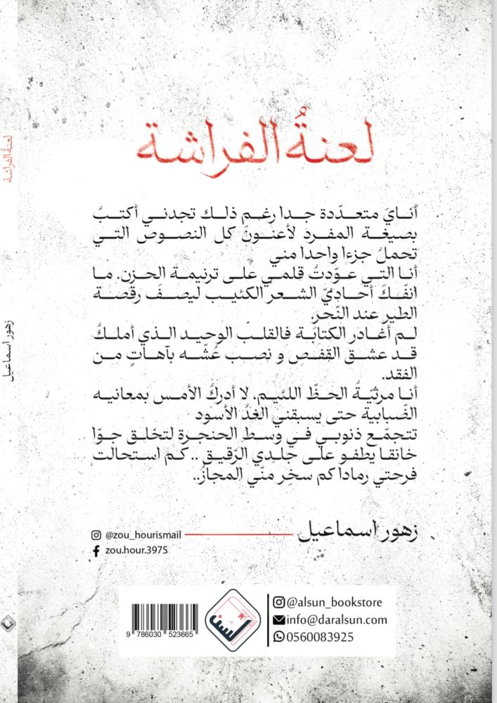 ليلى فراشة حرة تحلق بكل حرية لا تسمح لاحد ان يوقفها الا انها في اوقات كثيرة تتحول الى فراشة بجناحين مكسورين تصاب او يصيب اثرها كل من يقابلها لم تكن الحياة سهلة ولم يكن الحب الذي تمنته وعاشته بهذه السهولة ألخطأ منها؟ ام منه ؟تأليف: زهور اسماعيل